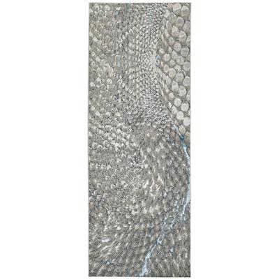 • Contemporary abstract design with silvery blue metallic accents