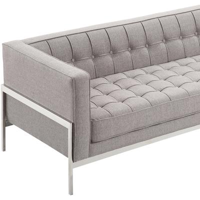 The Excelsior Nedra mid-century sofa is a stunning example of contemporary beauty sure to make a statement in any modern living room or lounge area. The Nedra's stainless steel metal frame is both stylish and sturdy. The sofa's tweed upholstery is beautifully button tufted and plush, presenting an inviting aesthetic and an exceptional level of comfort.