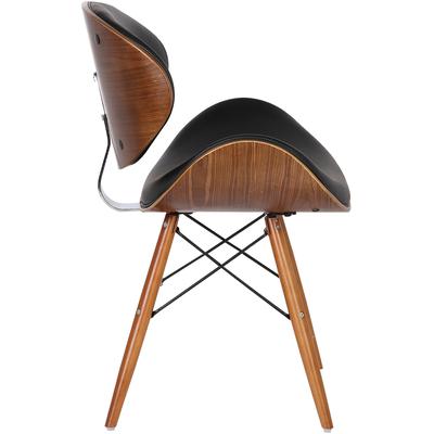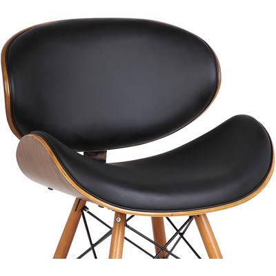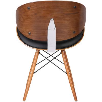 The Excelsior Zephy Mid-Century Dining Chair offers an optimal degree of comfort and style, perfect for the contemporary dining or living room. This modern dining chair features a softly curved back framed in a walnut wood finish and upholstered with plush faux leather. The Eiffel leg design features metal wires which enhance the support and durability of the tapered walnut wood legs. The Zephy even comes with floor protectors to ensure stability and minimize the risk of floor scratches.